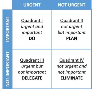 Easier said than done? YES! I have argued with myself over Quadrant IV – because I recognise that there are times I need ‘time out from the constant pressure to get it done! In my case, I take that extra coffee break/ or go outside for a stroll around the garden/ or watch the news, etc! This is because I have WRITTEN down break times into my schedule, so I don’t feel guilty about taking that time out, and simply do not have to eliminate all that could be considered in Quadrant IV! What would work for you?